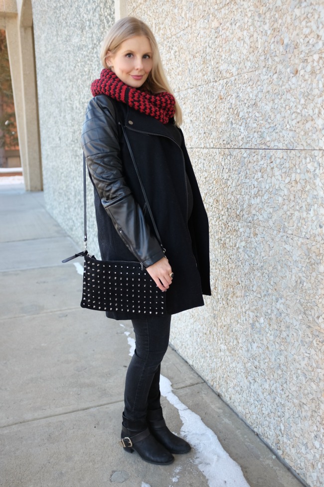 Wearing: jacket - ASOS (old), top and pants - Motherhood Maternity, boots - Vince Camuto,